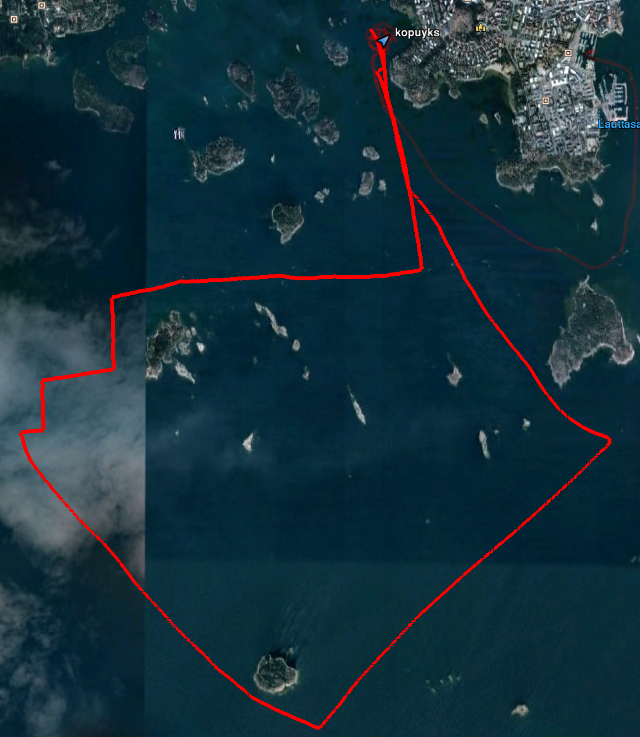 Tuuli shiftaili Tallinnaa lähetyttäessä ees-sun-taas (aika pitkälti ennusteiden mukaisesti näin jälkikäteen katsottuna). Meidän oolpörpös spinnu oli sen verran riitsikykynsä rajoilla että heti tilaa ollessa ajelimme ylemmäs peläten vastakiertoa, mistä meitä palkittiin sitten myötäkierrolla ja vitutusbisseillä. Radiosta kuulimme Lutra Lutran ja Penelopen ohittavan Aegnaa reilusti ennen meitä. Taidettiin kuulla Joonatan 2 ja joku muukin sieltä. Muita ei kuultu, mutta karu totuus meidän lännen valloituksesta oli jo käynyt ihan selväksi.